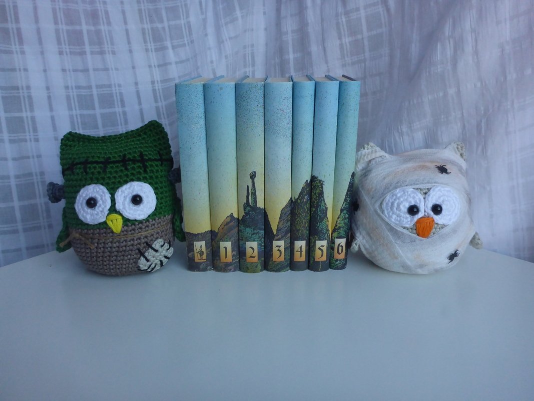 Angeboten wird hier eine deutschsprachige, ausführliche und gut bebilderte Häkelanleitung für die Eulen-Buchstützen, nicht die fertigen Eulen. Die Anleitung umfaßt 14 Seiten, mit 6 verschiedenen Eulen-Varianten und steht nach Zahlungseingang zum Download bereit.