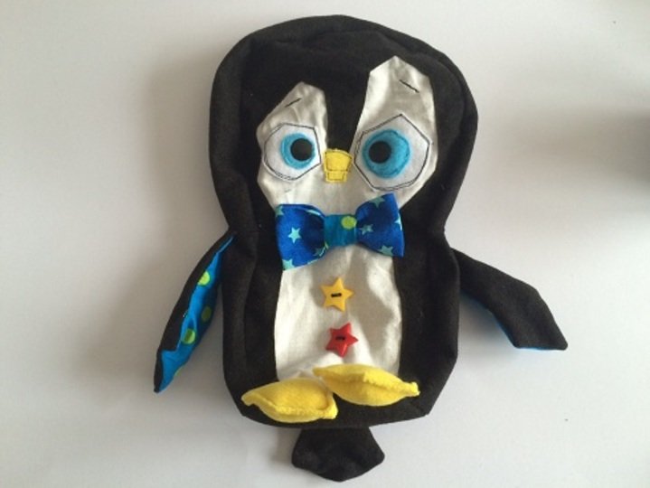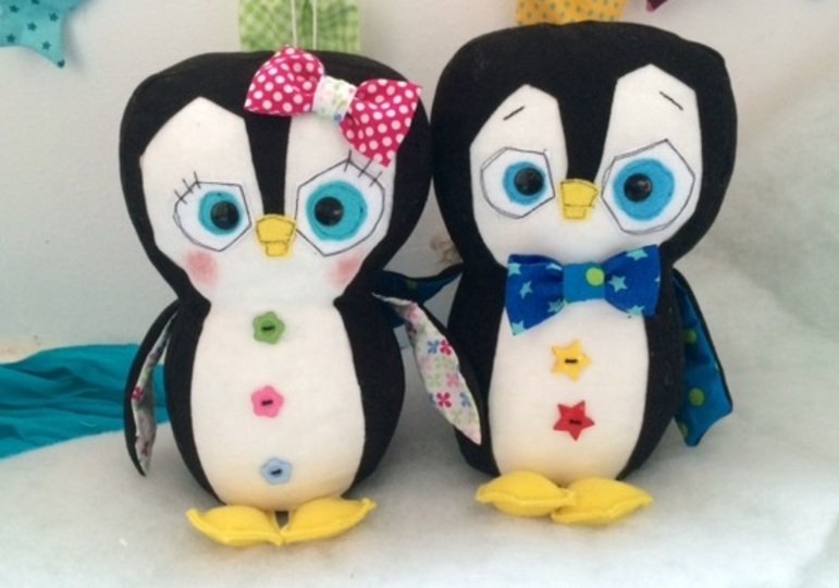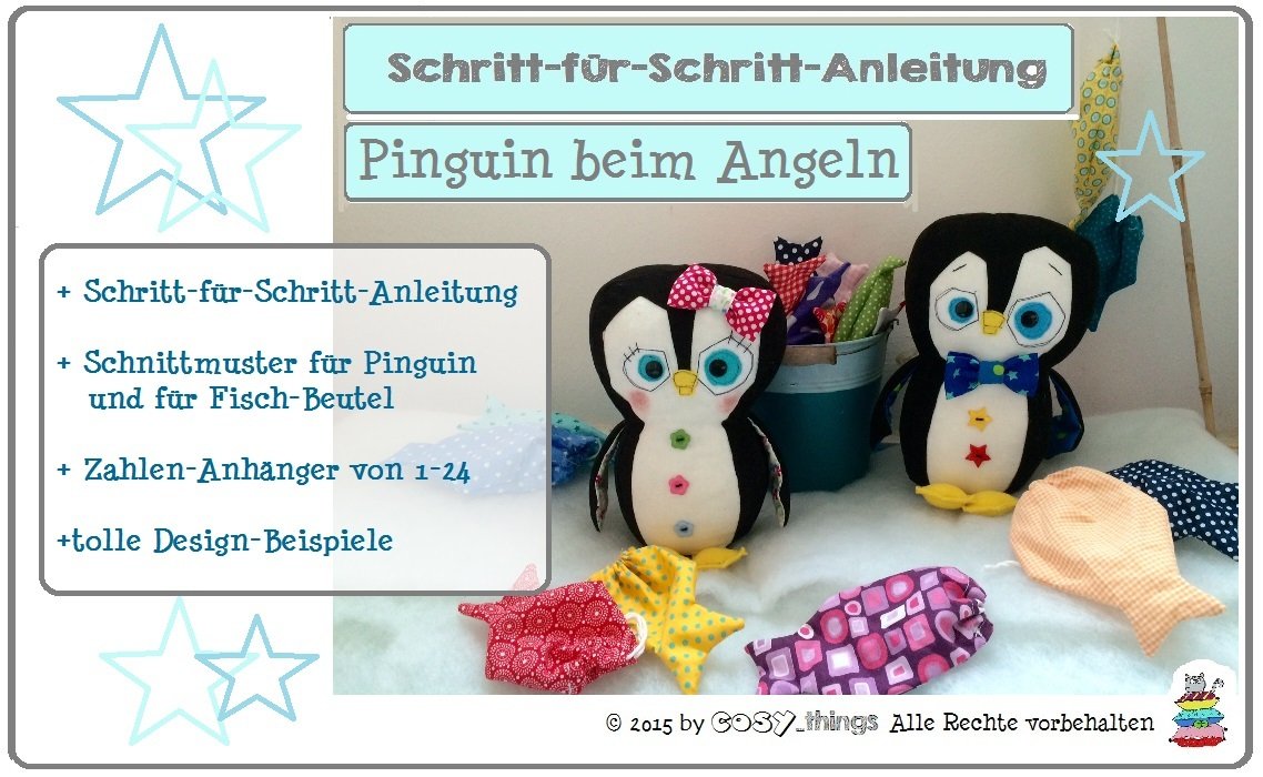 Für den Pinguin mit seinen Fischlein sollten vorwiegend nicht-dehnbare Stoffe verwendet werden. Es ist ein tolles Projekt um Stoffresteberge abzubauen!