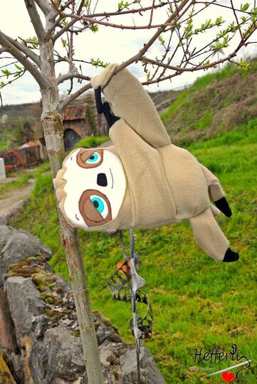 Unser Faultier „Lazy“ ist ca. 30 cm groß (ohne Beine), und lässt sich mit Klett oder KamSnaps an Armen und Beinen an Gitterbettchen, Türgriffe, oder sonstiges hängen und somit wunderbar geeignet, um als Kuscheltier oder Spieluhr, ein lebenslanger Freund zu werden.