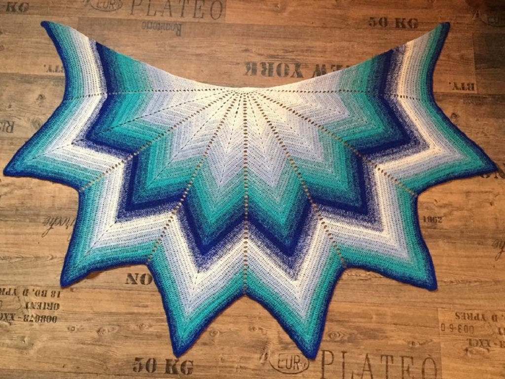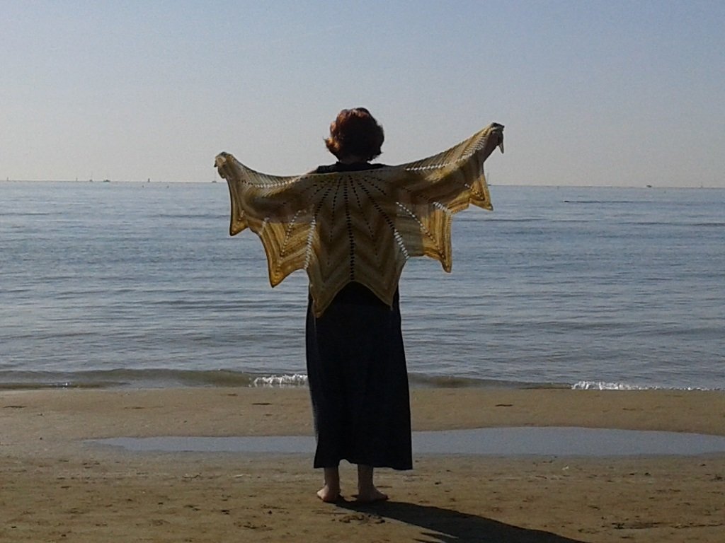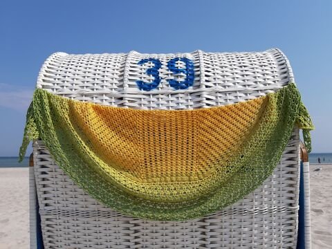 Die Anleitung zu diesem Tuch gab es lange Zeit nur in mündlicher Form auf Youtube zu sehen, seit kurzem gibt es sie nun auch schriftlich. Diese Anleitung ist während meines Italienurlaubes entstanden. Der Blick auf das blaue Meer, das Meeresrauschen, das Spazierengehen an der Strandpromenade – all das hat mich zu diesem Tuch inspiriert.