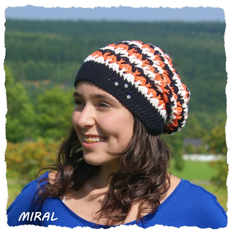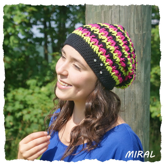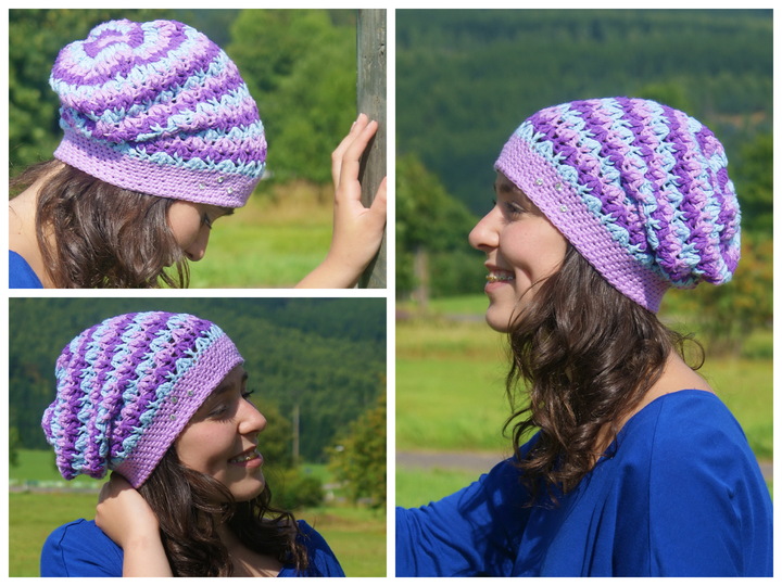 Wenn du sie einmal gehäkelt hast, geht’s sie auch ganz schnell und du kannst ganz tolle Effekte mit den Farben erzielen. Durch das Baumwollgarn ist sie eine luftig leichte Sommer Beanie.
