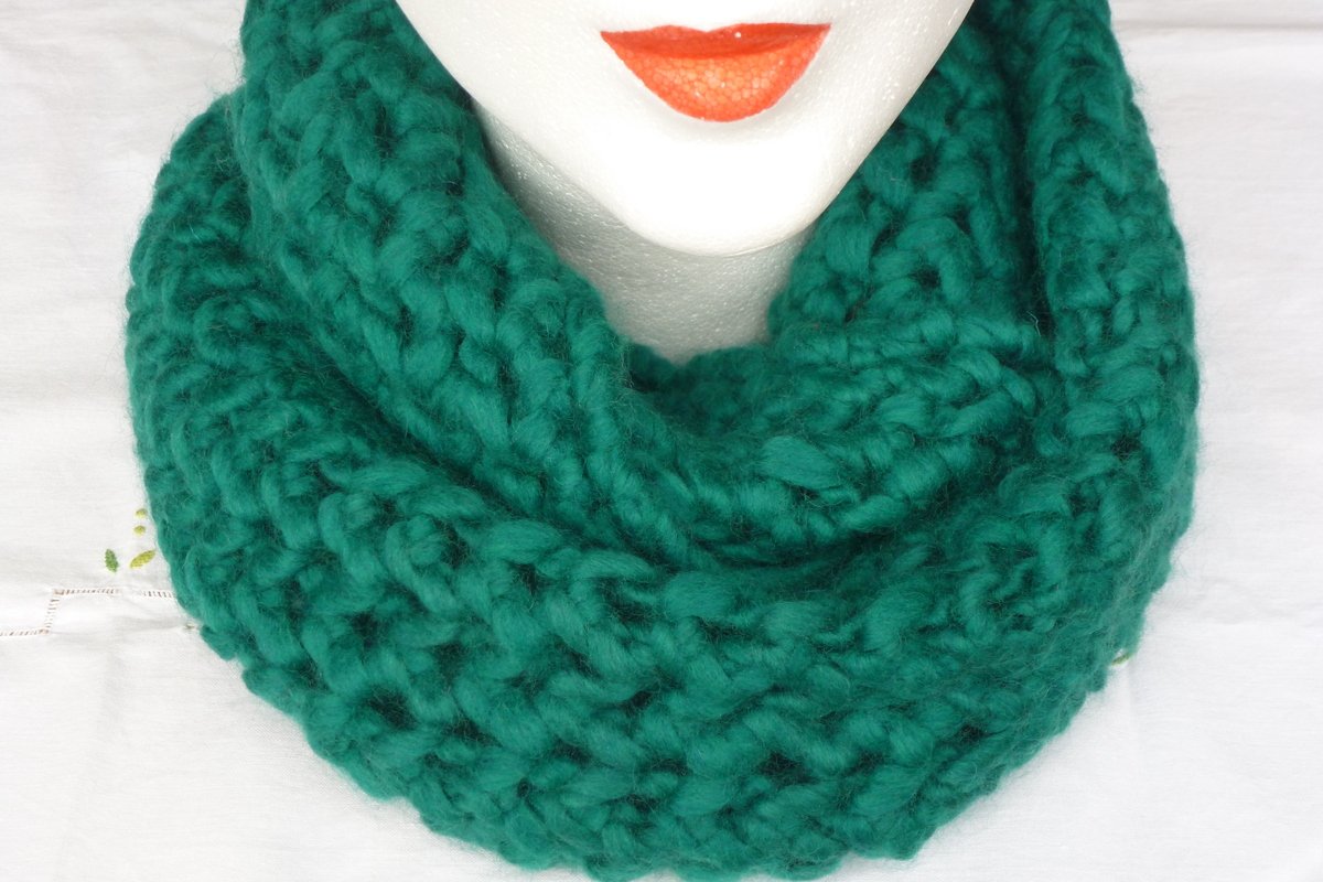 Dieser sehr schöne Loop ist aus Wolle für Nadelstärke 10-12 schnell gestrickt, das Muster sieht sehr kompliziert aus,