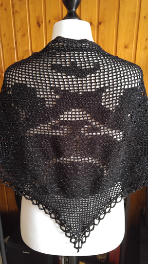 Einzigartiges Dreiecktuch mit einem Hundemotiv "Mops" in Filethäkeltechnik. Das Motiv kommt besonders gut zur Geltung, wenn unifarbenes Garn verwendet wird, aber auch das beliebte Farbverlaufsgarn kann zum Einsatz kommen. Für das Muster wurde ein dreifädiges Farbverlaufsgarn (ca. 190g/1000m)und Nadelstärke 2,5 verwendet. Damit wird das Tuch etwa 180x65 cm groß (ungespannt). Du kannst das Motivtuch aber auch mit jeder beliebigen Wolle häkeln.