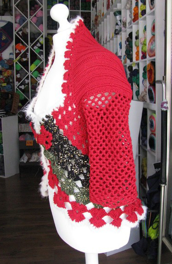 Eine Jacke wie aus einem Märchen. Ilsebills Fischernetzt ist getrickt und gehäklet und sieht auch mit Trachtenwolle ganz allerliebst aus. Die Jacke macht eine wunderbare Figur...auch von hinten!