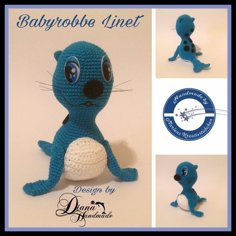 Linet ist eine kleine Babyrobbe, du kannst sie als Weihnachtsdeko wie auch ohne häkeln.