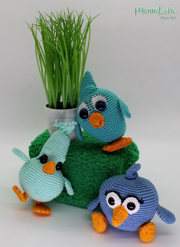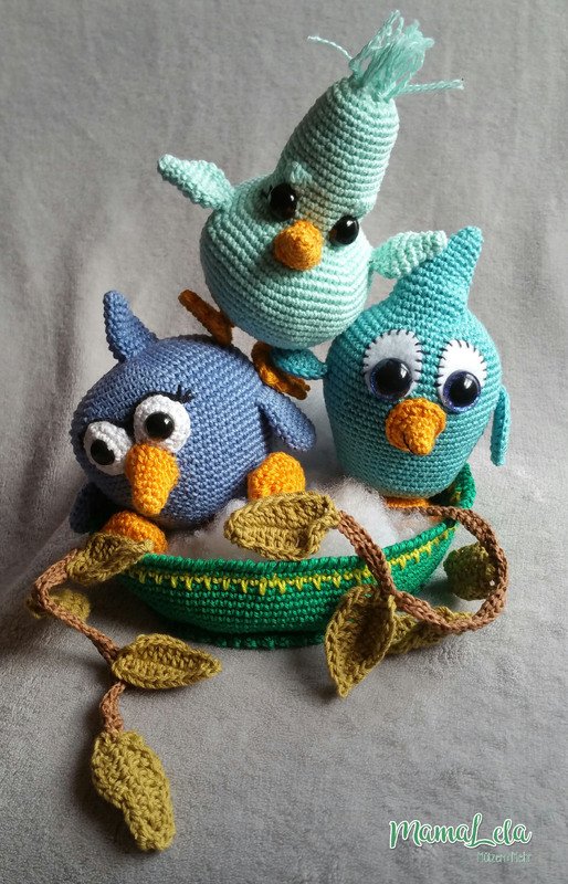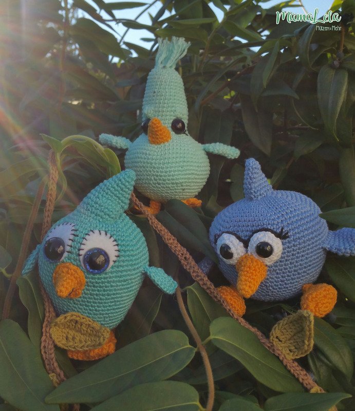 Die Vögelchen sind schnell gehäkelt und eignen sich auch bestens um Garnreste zu verarbeiten. Der Farbvielfalt sind hier keine Grenzen gesetzt.