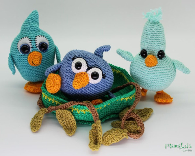 Das Nest in dem Wolke, Mint und Jade sitzen ist als Bonusanleitung im Set enthalten.
