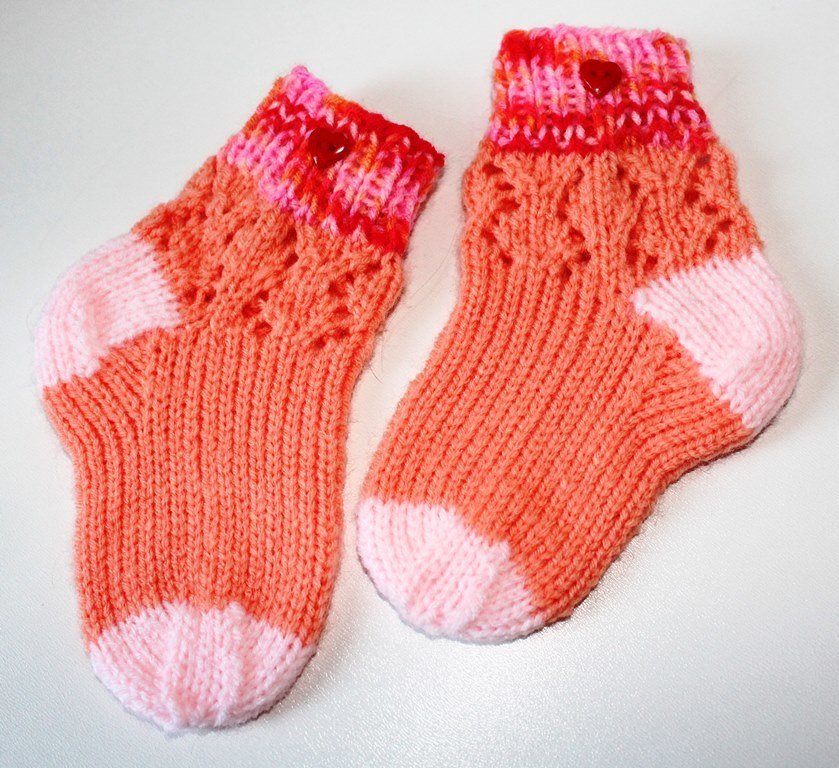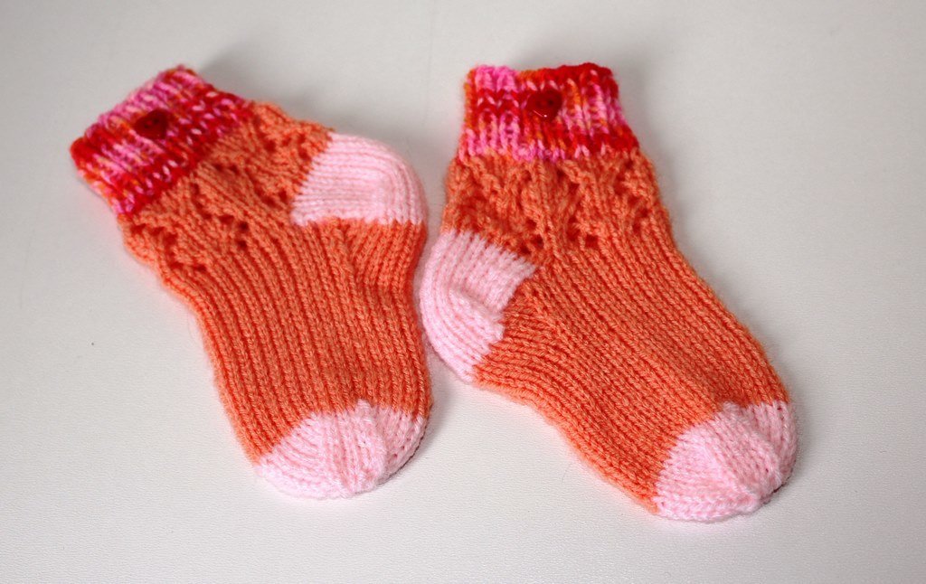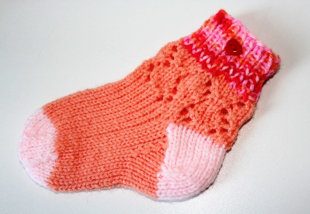Strickanleitung Baby-Söckchen, Babysocken mit Ajourmuster