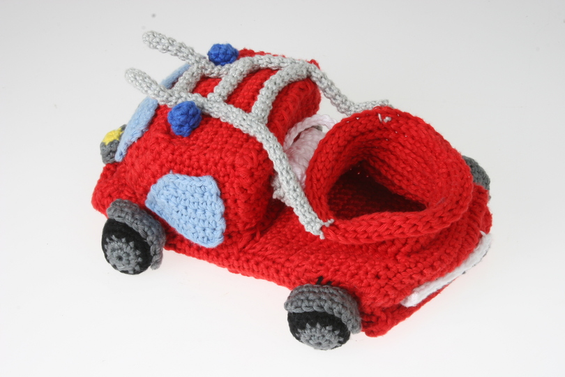 • Wolle+Häkelnadel: 100% Baumwolle NS 2,5-3,5, Nadelgr. 3 in, Dunkelblau, Hellgrau, Weiß, Schwarz (Nummernschild, Blaulichter, Schlauchaufroller, Leiter)
