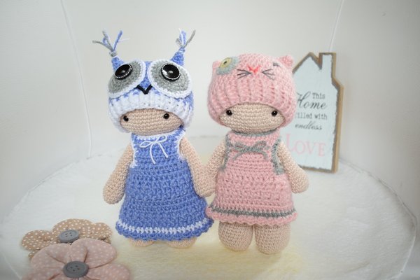 Egal ob Prinzessinnen-Kleid, Bauarbeiter, Badeanzug oder Hasen-Kostüm. Die Möglichkeiten sind unendlich. Mit dieser Anleitung erhältst NUR du das Tamituzi-Kostüm „ELLI&Minka“ bestehend aus einem langen und einem kurzen Kleid, und 2 Mützen (Eule und Katze) Die Anleitung für die zugehörige Tamituzi-Puppe findest du hier: https://www.crazypatterns.net/de/items/20584/haekelanleitung-tamituzi-basis-puppe-ohne-kostuem-berarbeitet