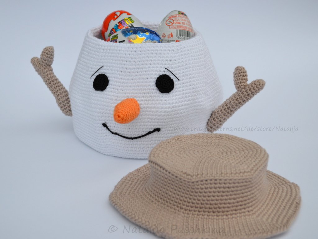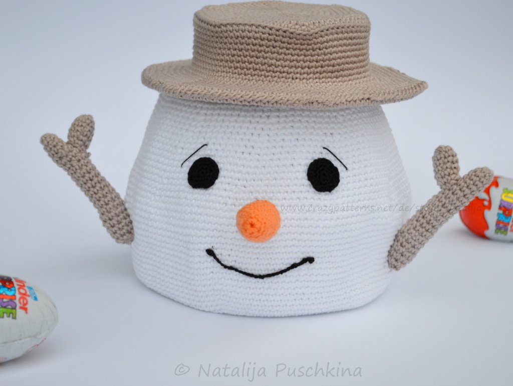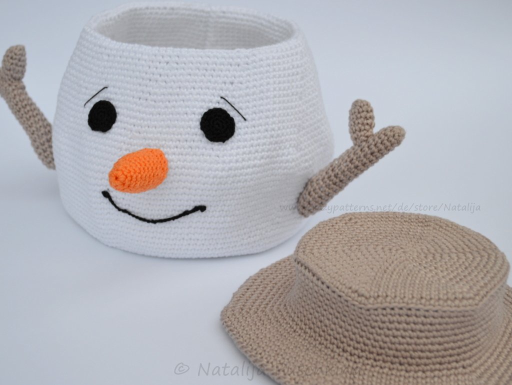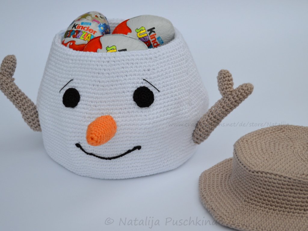 In der Küche ist der Schneemann praktisch zur Aufbewahrung von Süßigkeiten. Kinder können in dem Körbchen kleine Geschenke über Adventszeit sammeln.