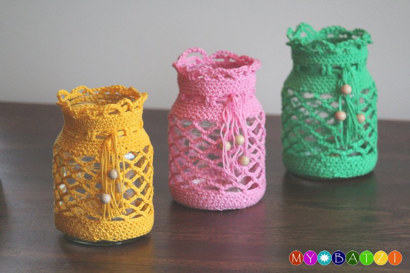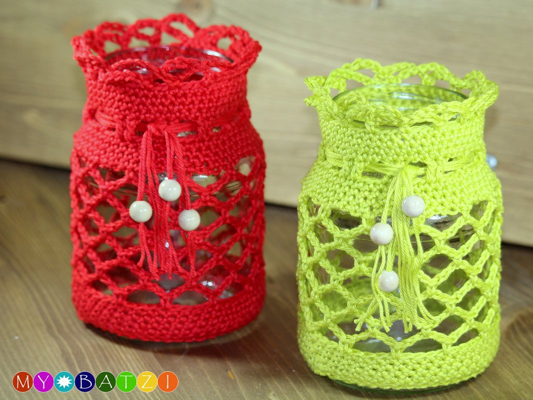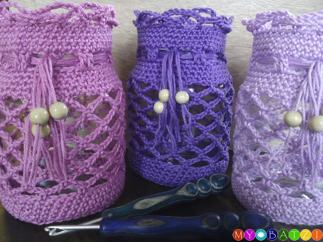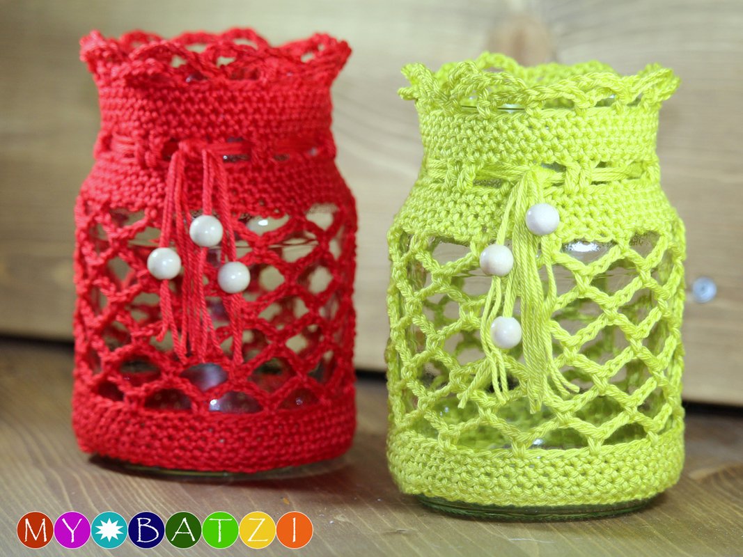 Die Umhäkelten Gläser "Lichterzauber" sind nicht nur eine tolle Upcycling - Idee, sondern auch auch eine wunderschöne Deko für das Zuhause. Und auch zum Verschenken eignen sich die Gläser prima. Zum Nachhäkeln braucht ihr nur ein altes leeres Joghurtglas und Wolle. Die Gläser sind schnell gehäkelt. Die Maschen in der Mitte extra lichtdurchlässig gestaltet, damit man später das schön flackernde Teelicht sieht.