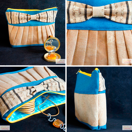 Die Clutch ist Teil einer Serie von Taschen, die mit Plissee-Falten und Schleifen