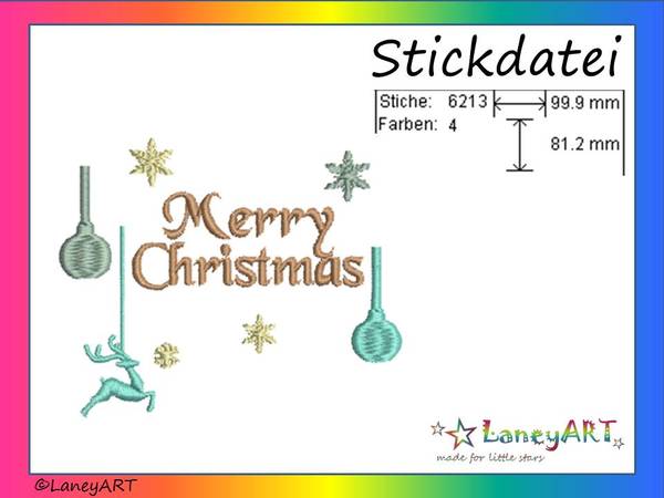 Stickdatei "Merry Christmas - Weihnachten" Pes Format (Deco, Brother, Babylock)