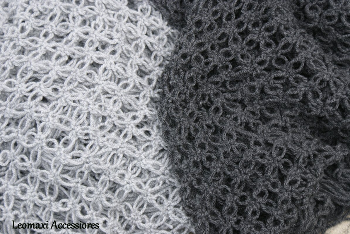 Seit ein paar Jahren gibt es die fertigen Tücher in meinen Shop zu kaufen. Seitdem werde ich immer öfter nach einer Anleitung gefragt, deshalb habe ich nun hier meine Erfahrungen zusammengestellt. Die Größe des Tuches kann variiert und bis zu einer großen Stola einfach erweitert werden. Da das Muster so luftig leicht ist, kann auch eine große Stola super als Halstuch getragen werden. Als Material kannst du eigentlich fast jedes Garn verwenden. Umso stärker das Material umso gröber wird das Muster. Aber auch mit der Nadel kann das Maschenbild verändert werden.