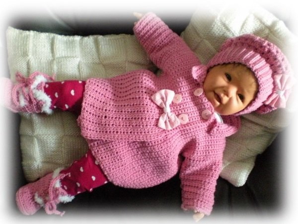 Mit dieser Häkelanleitung häkelst Du ein supersüßes, schickes Babyset.