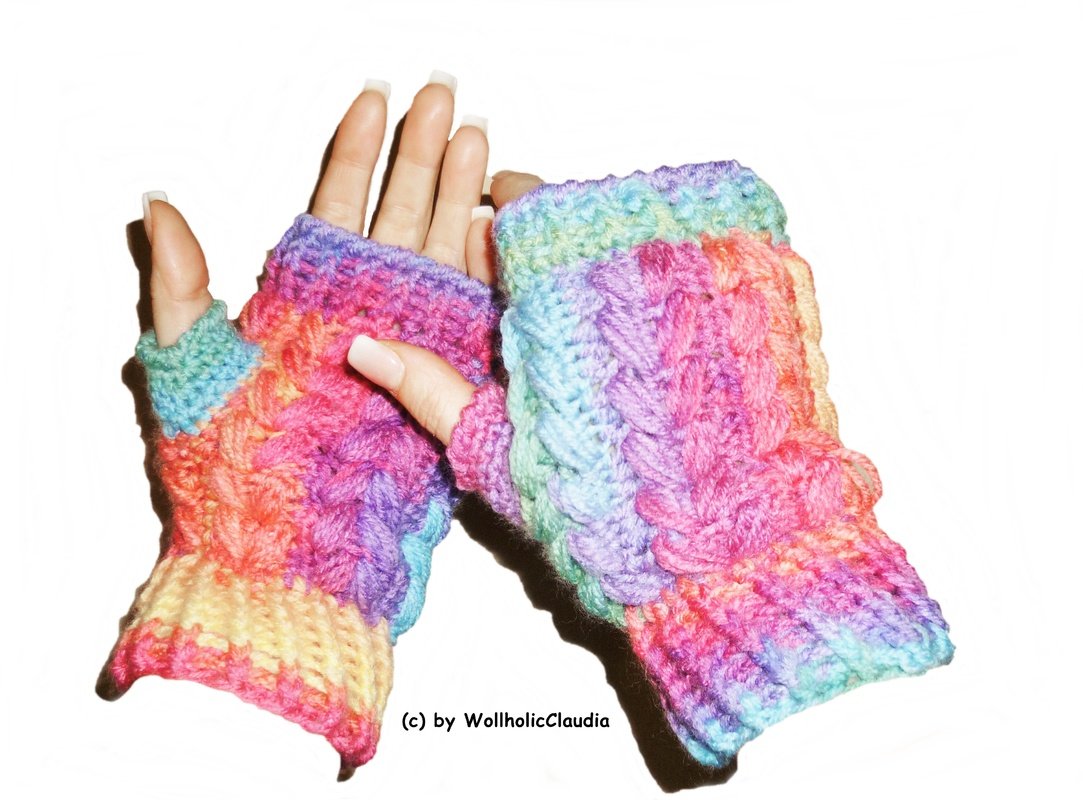 Ein perfekter Begleiter für die kälteren Tage sind diese Handstulpen im Zopfmusterlook. Sie sind individuell auf alle Größen anpassbar. Die Anleitung wird Schritt für Schritt erklärt und ist reichlich bebildert.