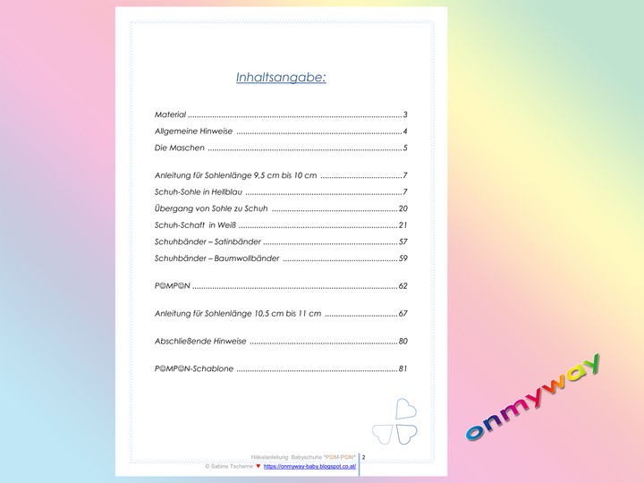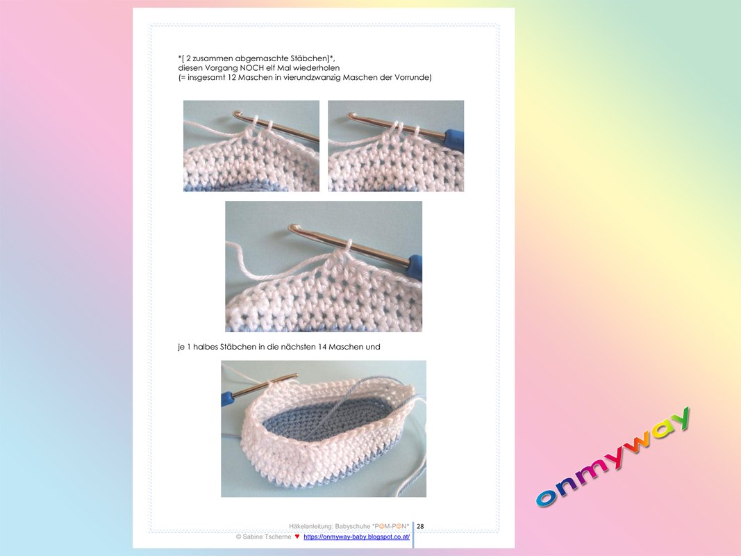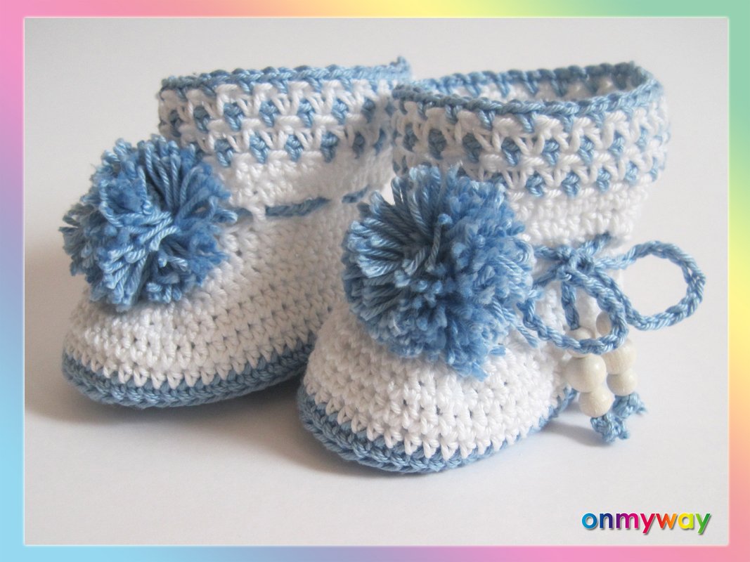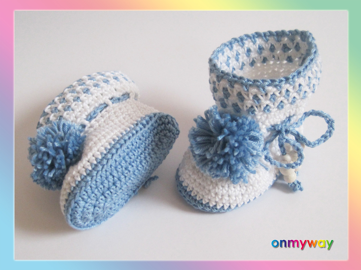 ♥ Die Häkelanleitung für die Babystiefelchen POMPON umfasst 81 Seiten! mit vielen Abbildungen.
