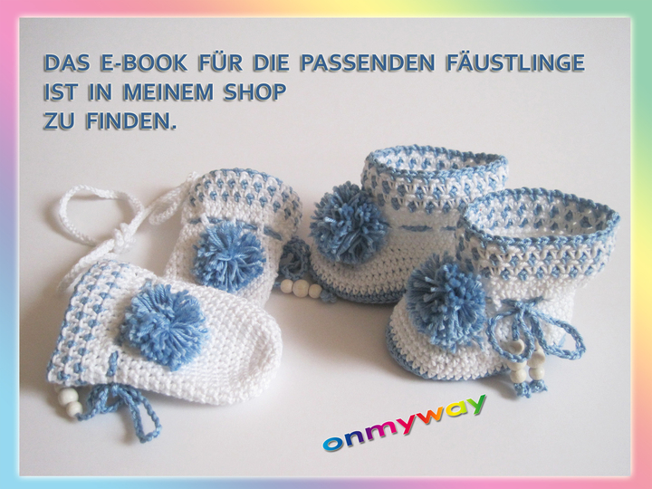 Wenn Du zu den Baby Stiefelchen "POMPON" auch passenden Fäustlinge selber häkeln willst: