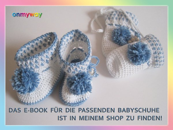 Wenn Du zu den Fäustlingen "POMPON" auch noch passenden Stiefelchen für´s Baby häkeln willst: Die Häkelanleitung zu den Babystiefeln "POMPON" findest Du in meinem Shop!