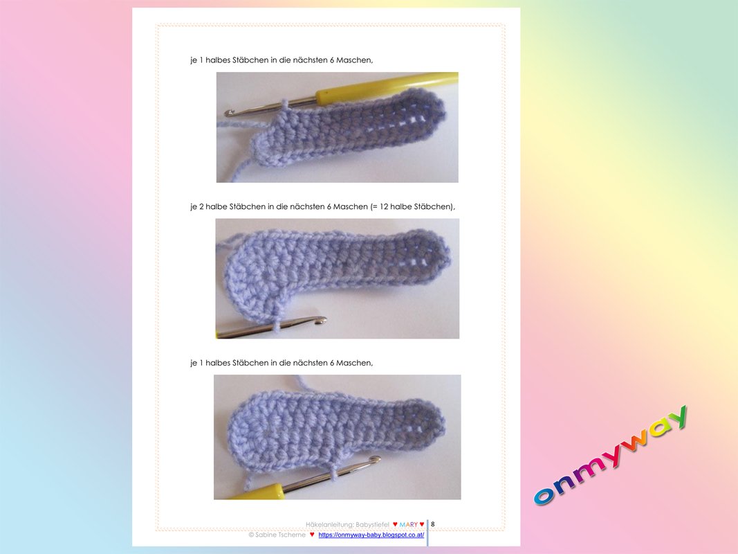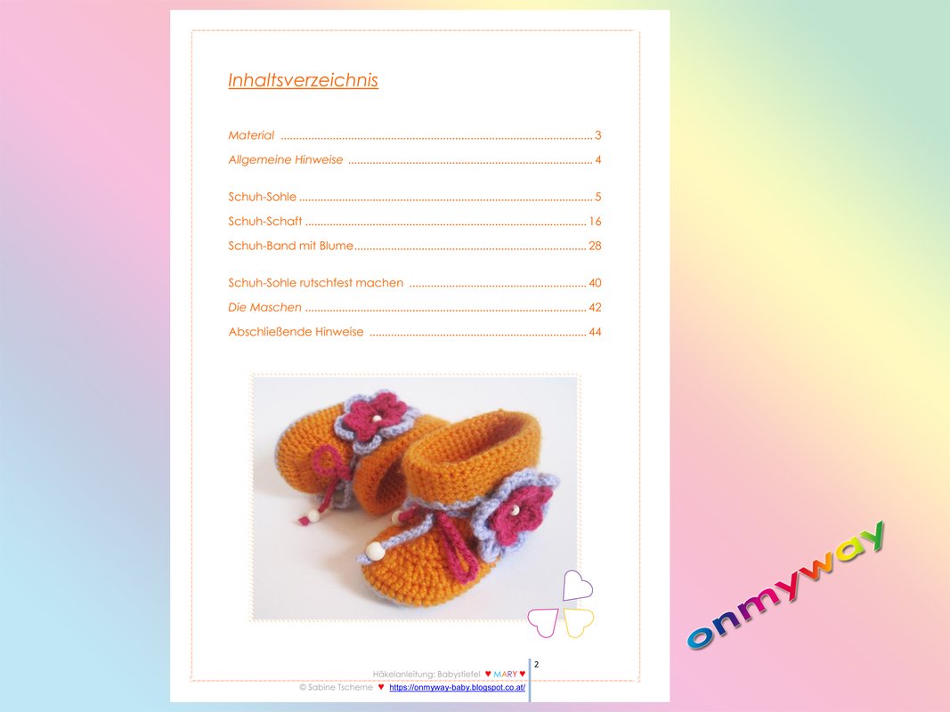♥ Mit dieser Häkelanleitung kannst Du die Babystiefel auch ganz einfach selber häkeln. Die Häkelanleitung für die Babystiefel MARY ist sehr anfängerfreundlich verfasst, doch keine Häkelschule von Grund auf. Luftmaschen, Kettmaschen, feste Maschen, halbe Stäbchen und Stäbchen schon mal gehäkelt haben. Die verwendeten Häkelmaschen und alle Arbeitsschritte werden aber genau erklärt und mit vielen Abbildungen veranschaulicht, sodass Du mit Zuversicht und Freude ans Werk gehen kannst.
