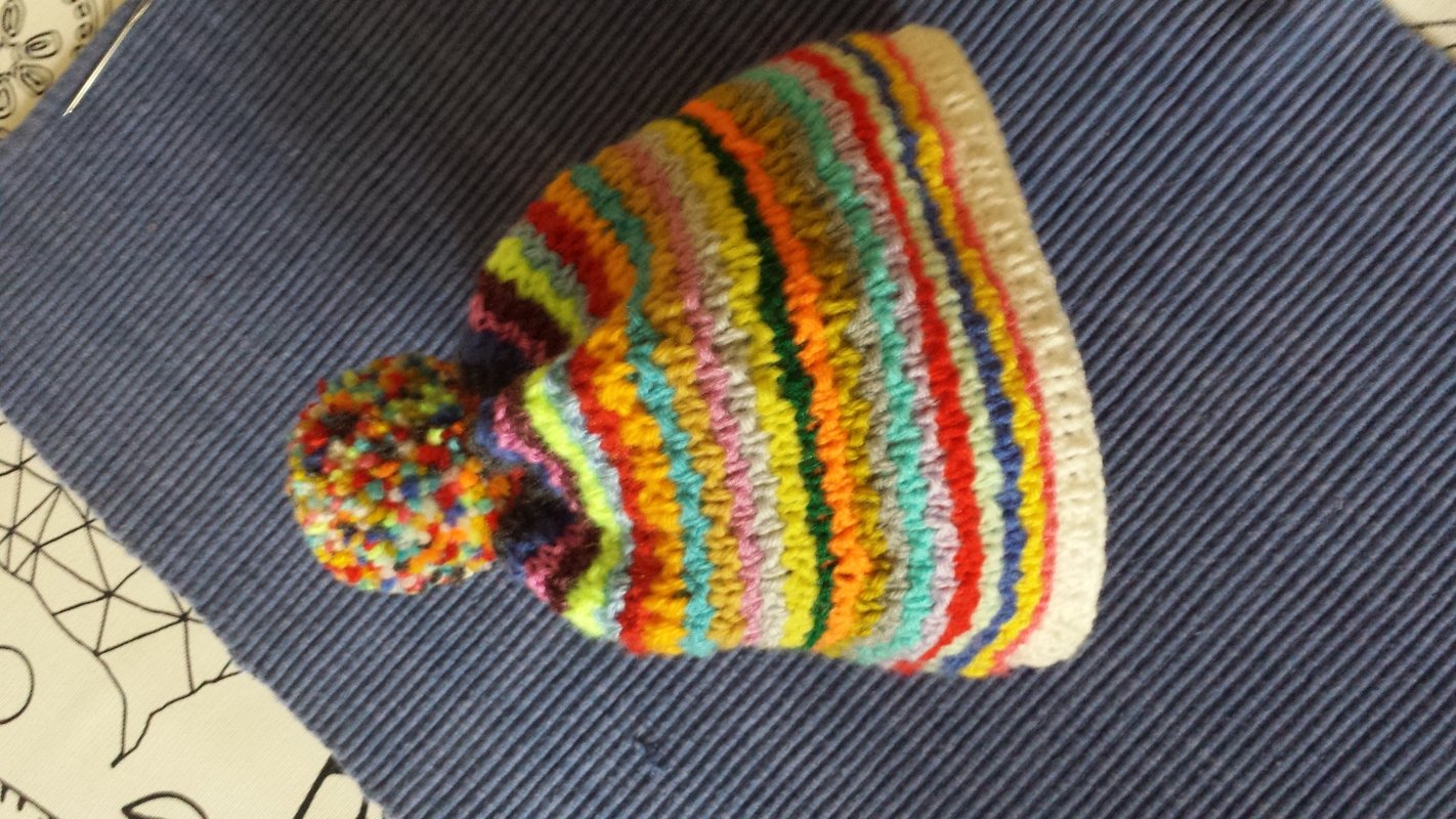 lustige bunte Mütze für Babys 4-6 Monate alt, Kopfumfang ca. 40cm, ideal für Wollreste-Verwertung, sieht super aus und der Wollreste-Bestand wird kleiner. Auch für Anfänger und nicht so geübte Strickerinnen geeignet, jedoch müssen Strick-Grundkenntnisse vorhanden sein. Schnell gestrickt, jede Mütze ist ein individuelles Einzelstück und gibt es bestimmt kein 2. Mal.