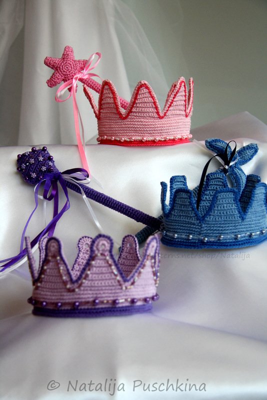 Hinweis: Beim vorgestellten Produkt handelt es sich NICHT um fertige Krone mit Zauberstab, sondern lediglich um eine Schritt-für-Schritt-Häkel-Anleitung mit einer kurzen Version zum Ausdrucken, die Dir dabei hilft, selbst tolle Kronen und Zauberstab in 3 Design zu häkeln. Eine ausführliche Version zum Arbeiten am PC ist natürlich auch dabei.