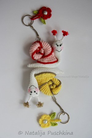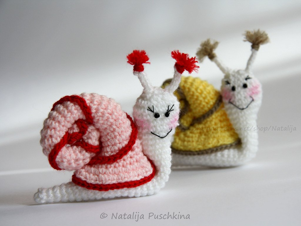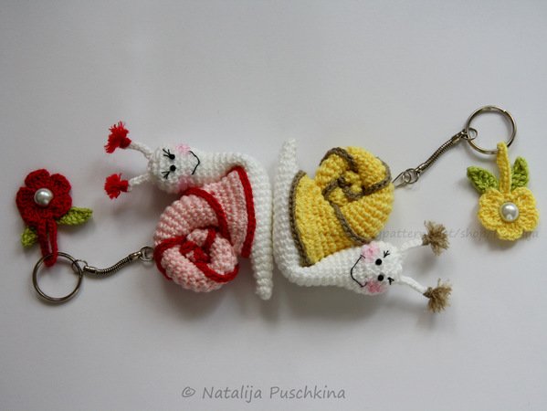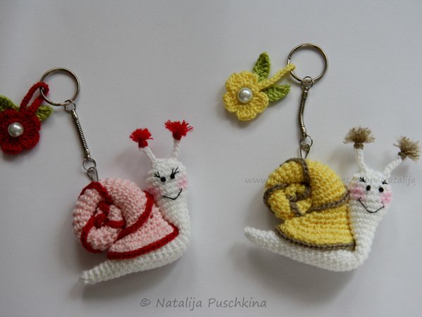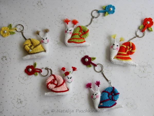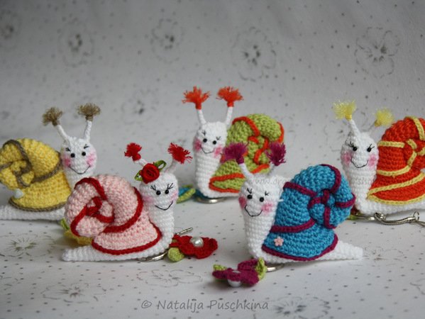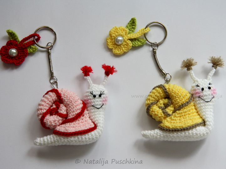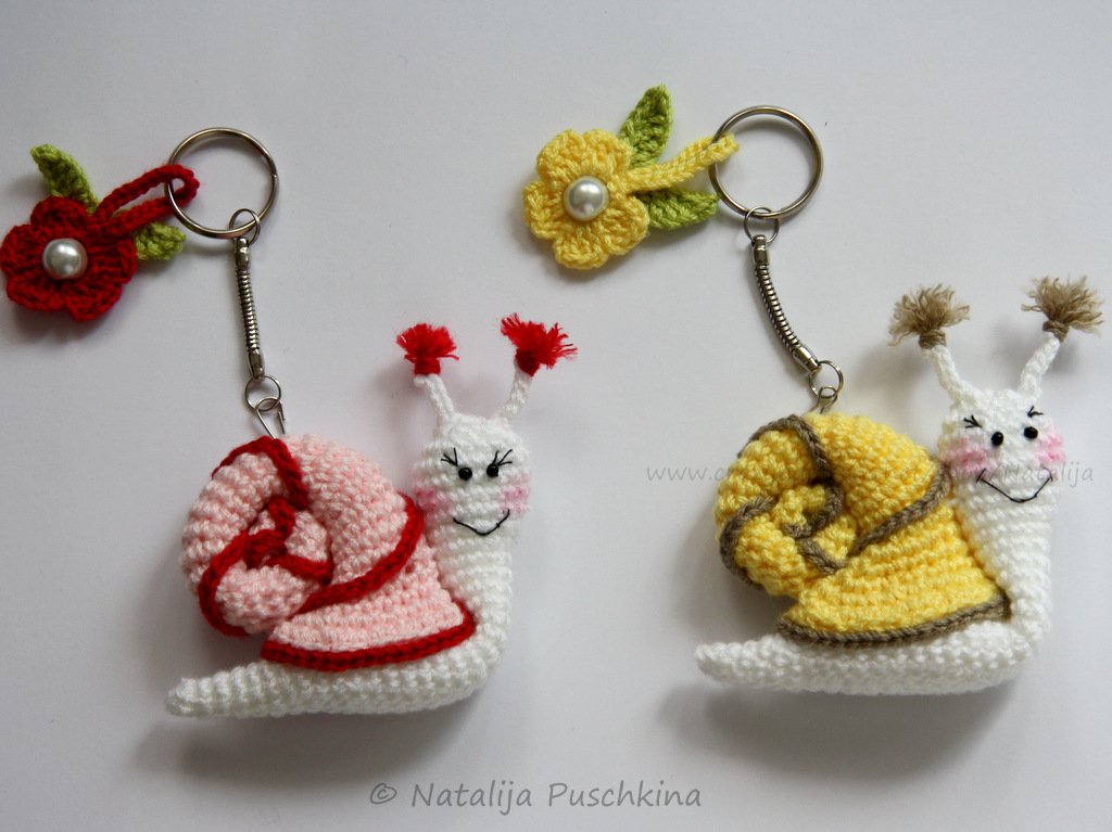 Süße kleine Schnecken selber häkeln - als Schlusselanhänger oder Deko.