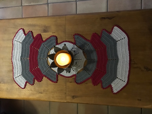Die Beschreibung bist wirklich super. da mein Tisch etwas größer ist, habe ich einfach noch eine Reihe auf jeder Seite mehr gearbeitet. Ich habe auch die ganze Sache mir dunkelgrün, weinrot, weiß und Gold gearbeitet, so ist der tischläufer sehr weihnachtlich. A7hc ha@e ic Filmtagen verwendet, das gibt dem ganzen eine edle Note.