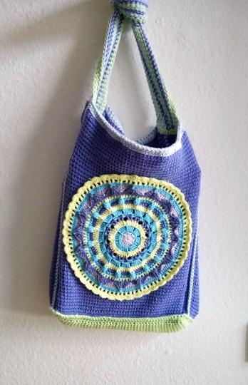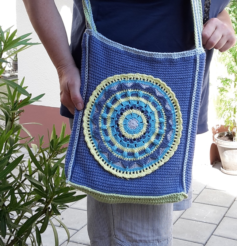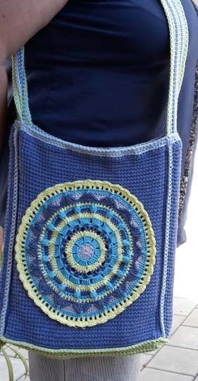 Diese Einkaufstasche mit einem aufgenähten Mandala ist etwas ganz besonderes.