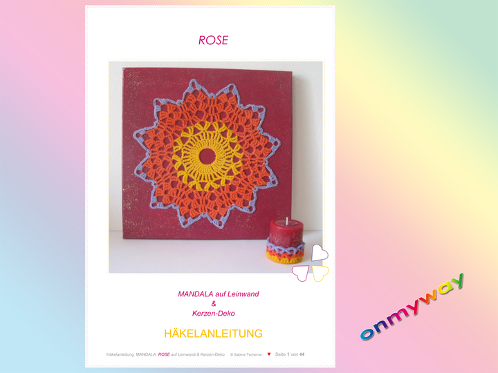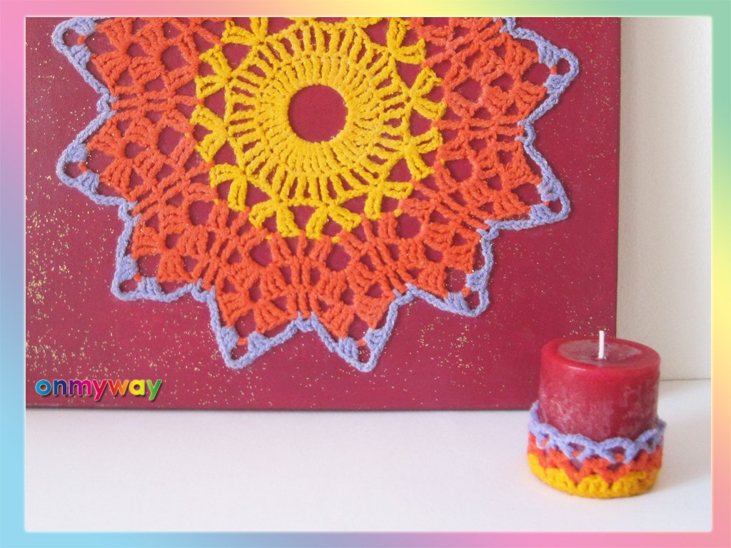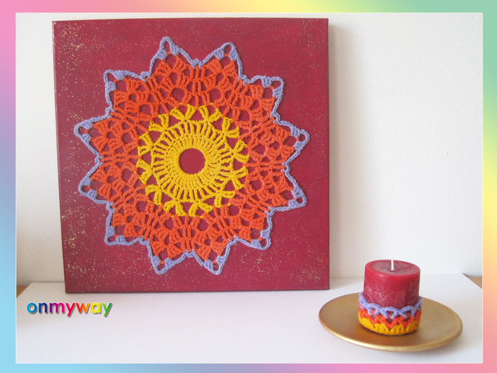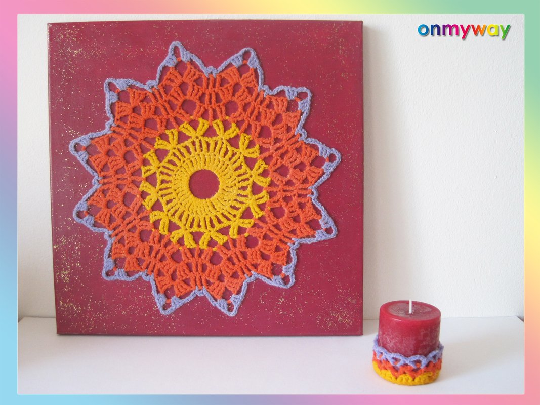 ♥ Häkle doch einfach ein MANDALA und mache daraus ein faszinierendes, selbst gehäkelte Bild auf Leinwand. Passend zu Deinem MANDALA BILD bekommt auch die Duftkerze "ROSE" eine selbst gehäkelte Deko.