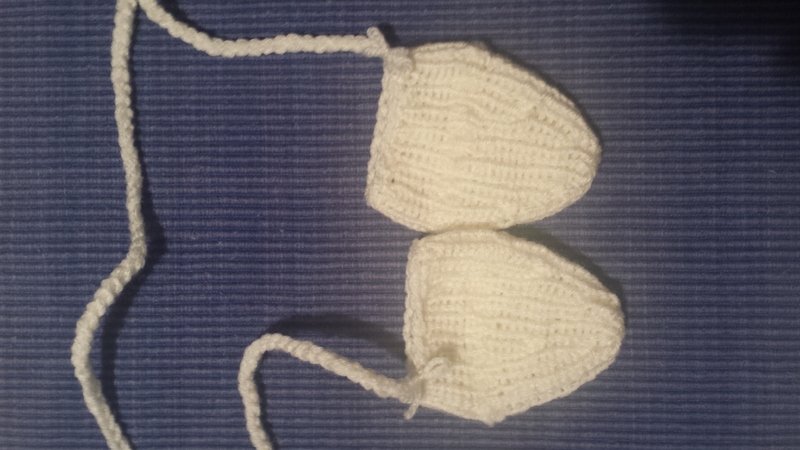 Damit das Baby warme Händchen hat, kleine Fäustlinge mit Schnur, schnell gestrickt und super praktisch.
