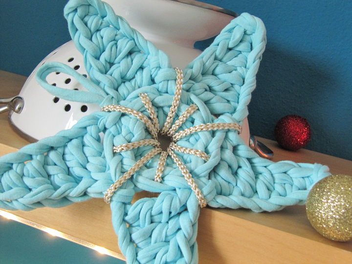 ❤ Häkel Dir praktische und dekorative Topfuntersetzer als Sterne aus Textilgarn–entworfen von alpenglüh'n.