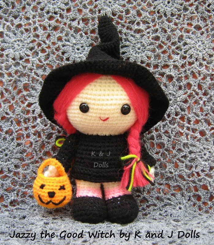 Die Anleitung ist 6 Seiten lang. Detaillierte Anweisungen und 15 Bilder helfen Ihnen, Jazzy die Hexe zu machen.