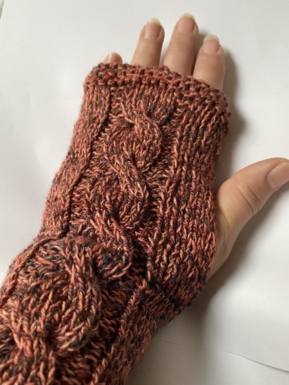 Rechtzeitig zur kalten Jahreszeit noch schnell ein paar Handstulpen und ein Stirnband gemacht .