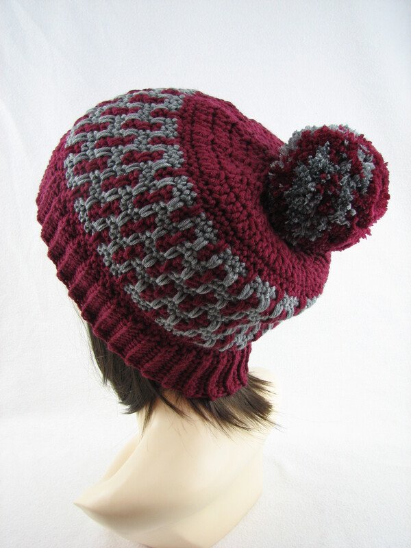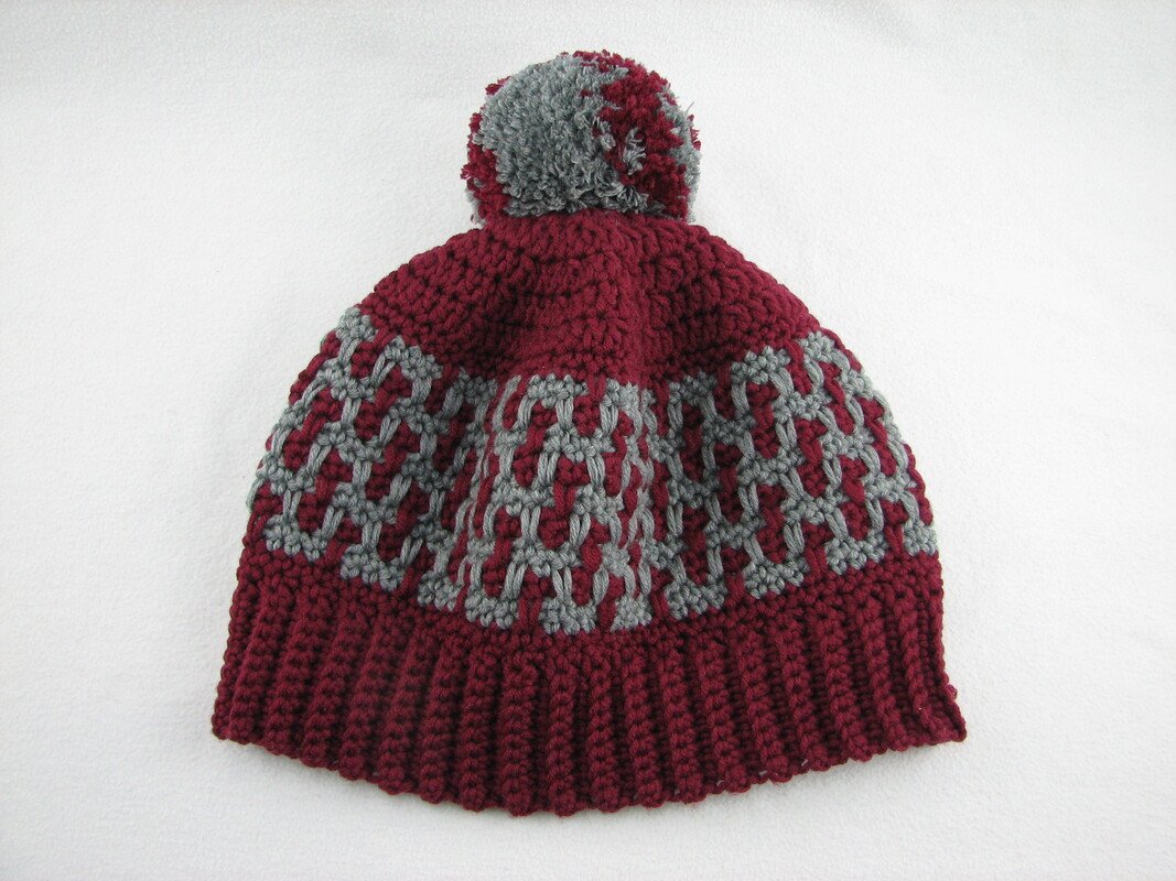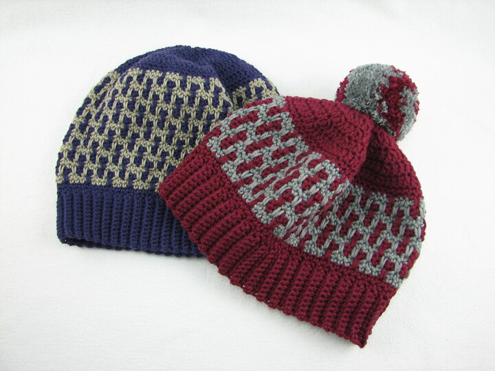 Sie wollten schon immer eine zweifarbige Mütze häkeln, haben sich aber nicht getraut. Diese Mütze ist der richtige Einstieg. Obwohl das Muster so aussieht, als ob beide Farben gleichzeitig verarbeitet werden, so häkelt man pro Runde aber immer nur mit einer Farbe. Die verarbeiteten Maschen sind: Luftmaschen, feste Maschen, Kettmasche und Stäbchen.