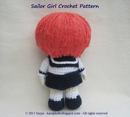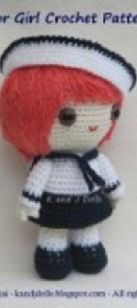 Häkelanleitung, um eine niedliche Puppe im Matrosen-Outfit zu schaffen. Die Anleitung ist 12 Seiten lang. Detaillierte Anweisungen und 38 Bilder helfen das Matrosen-Mädchen zu machen.