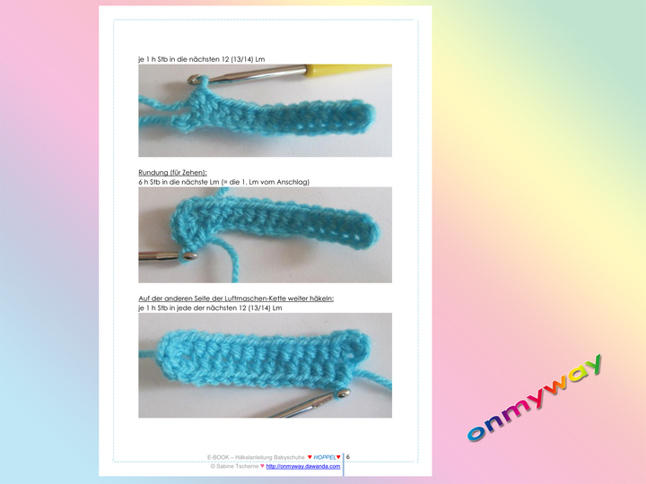 Die Häkelanleitung für die Babyschuhe HOBBEL umfasst: