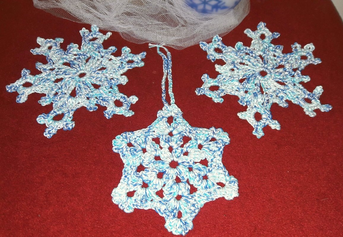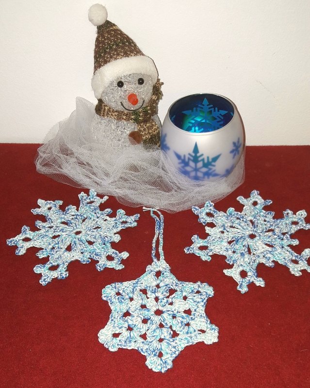 Angebot - 2 Anleitungen für schnell und einfach gehäkelte Schneeflocken/Weihnachtssterne für Christbaum als Deko oder auch als Geschenk perfekt für die Weihnachtszeit.