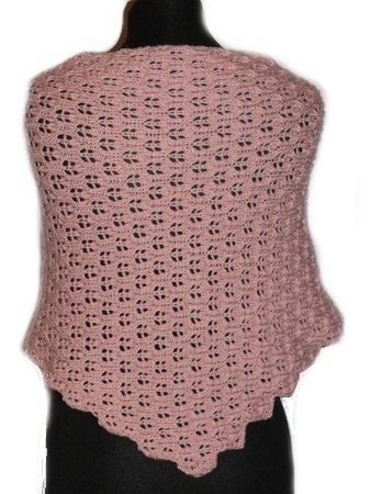 Das Tuch wird quer mit kastenförmigen Zunahmen bzw. nach der Mitte des Tuches Abnahmen gestrickt.