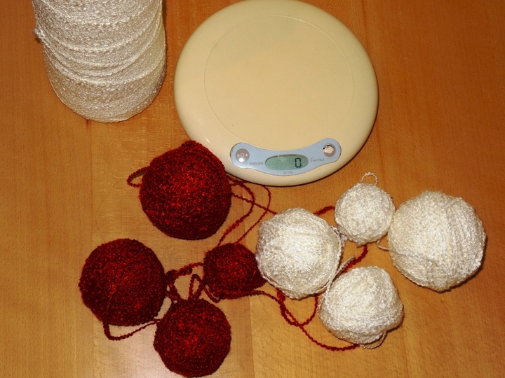 Ich habe ein dünnes Bouclégarn verwendet, was ich von eine Kone abgewickelt hab. Es sind aber auch andere Garne möglich ,wie Bravo originals oder Bamboo Touch.