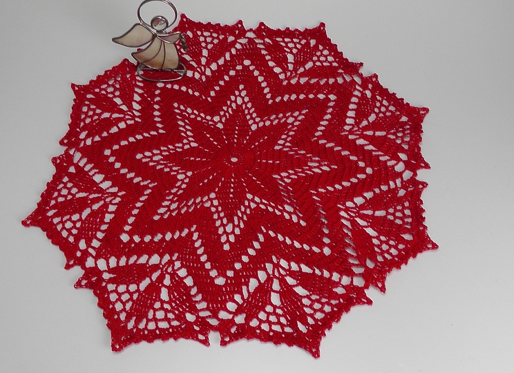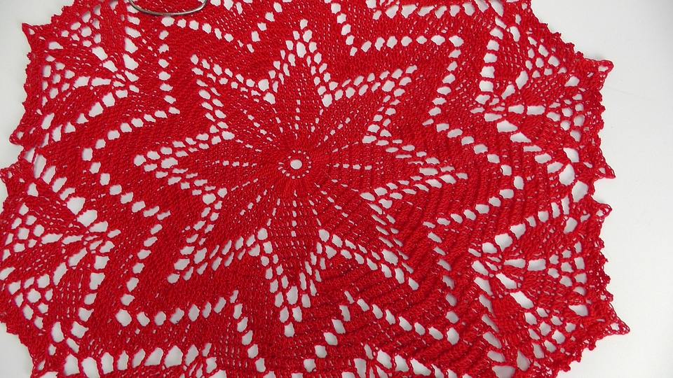 ca. 60 g Baumwollgarn HÄKELSTAR 100 in Rot von PRO LANA (LL 566 m/ 100 g), 1 ADDI Häkelnadel Nr. 1,5; evtl. Sprühstärke