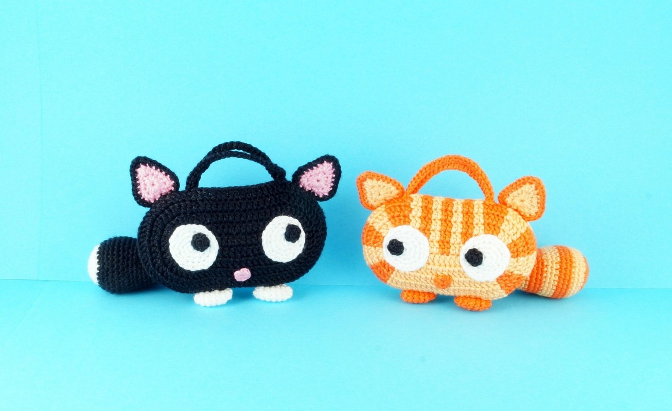 Größe: je nach Wolle, z. B., mit Wolle LL 125 m / 50 g gehäkelt, wird jede Tasche ca. 12 cm breit und 7 cm hoch (ohne Ohren).