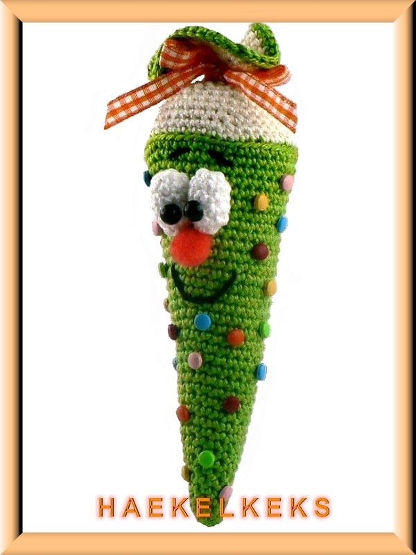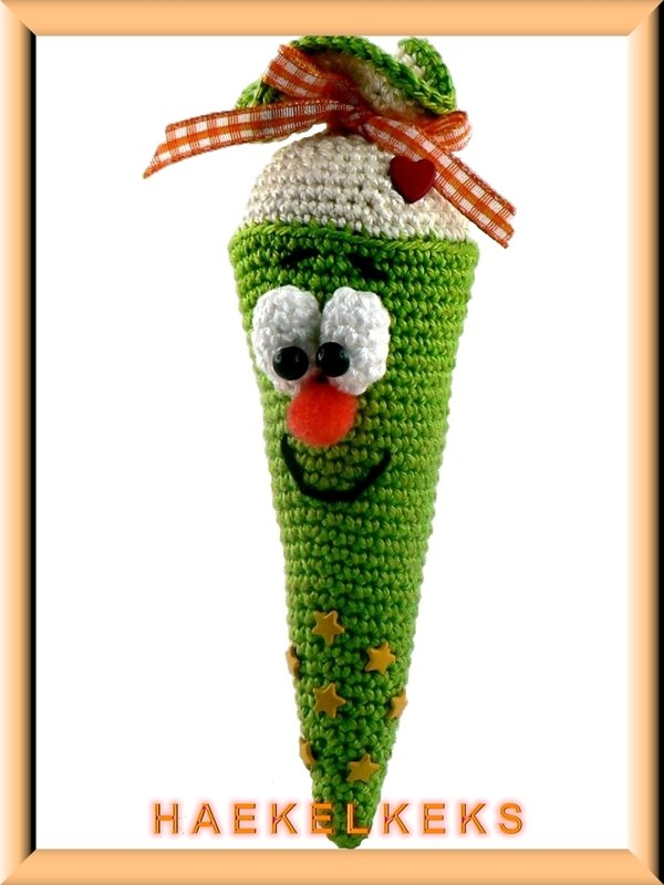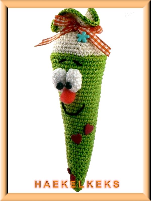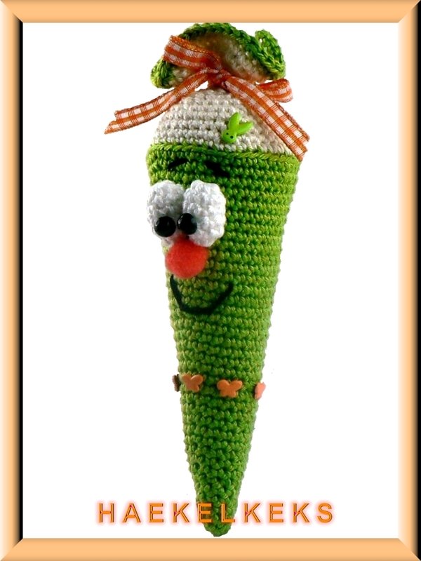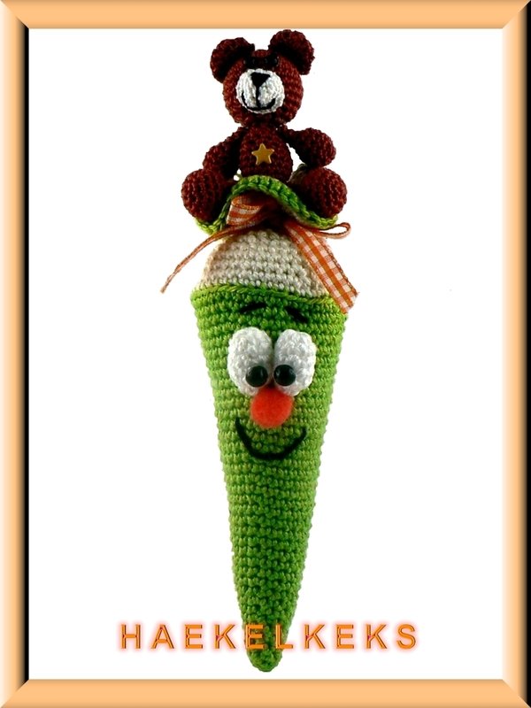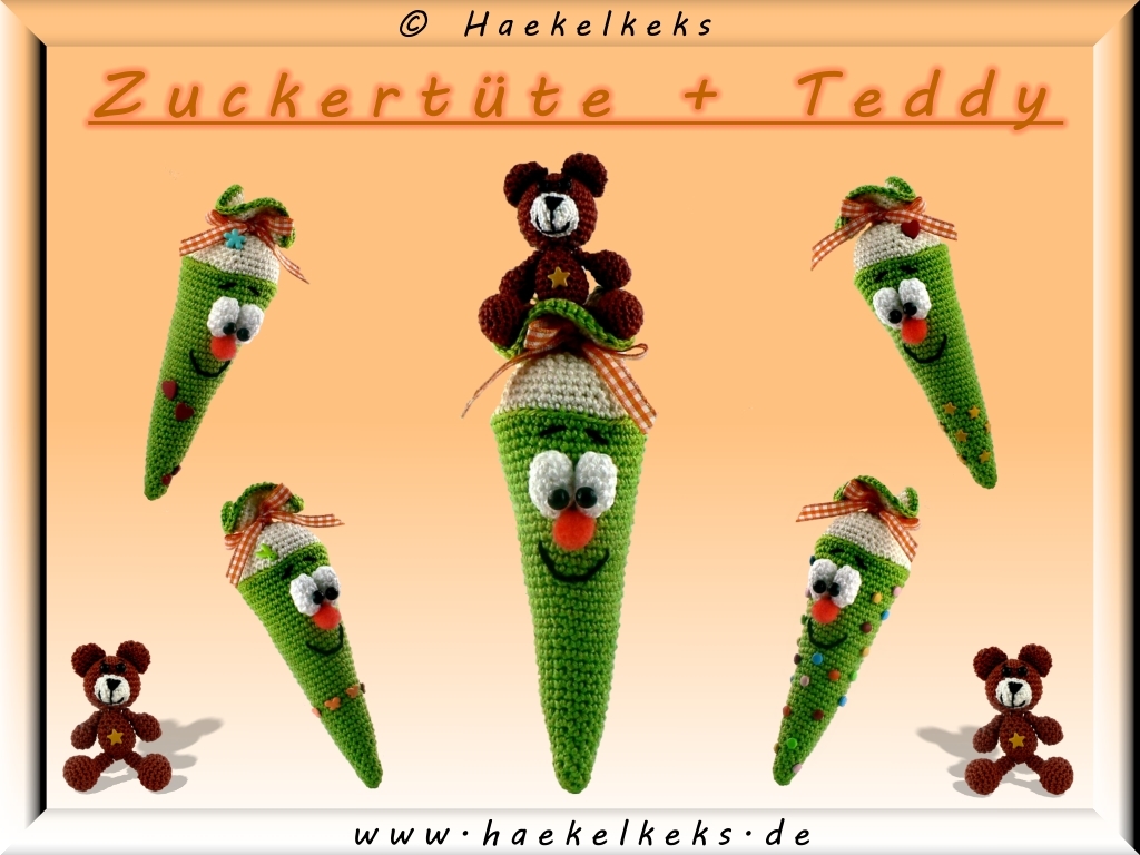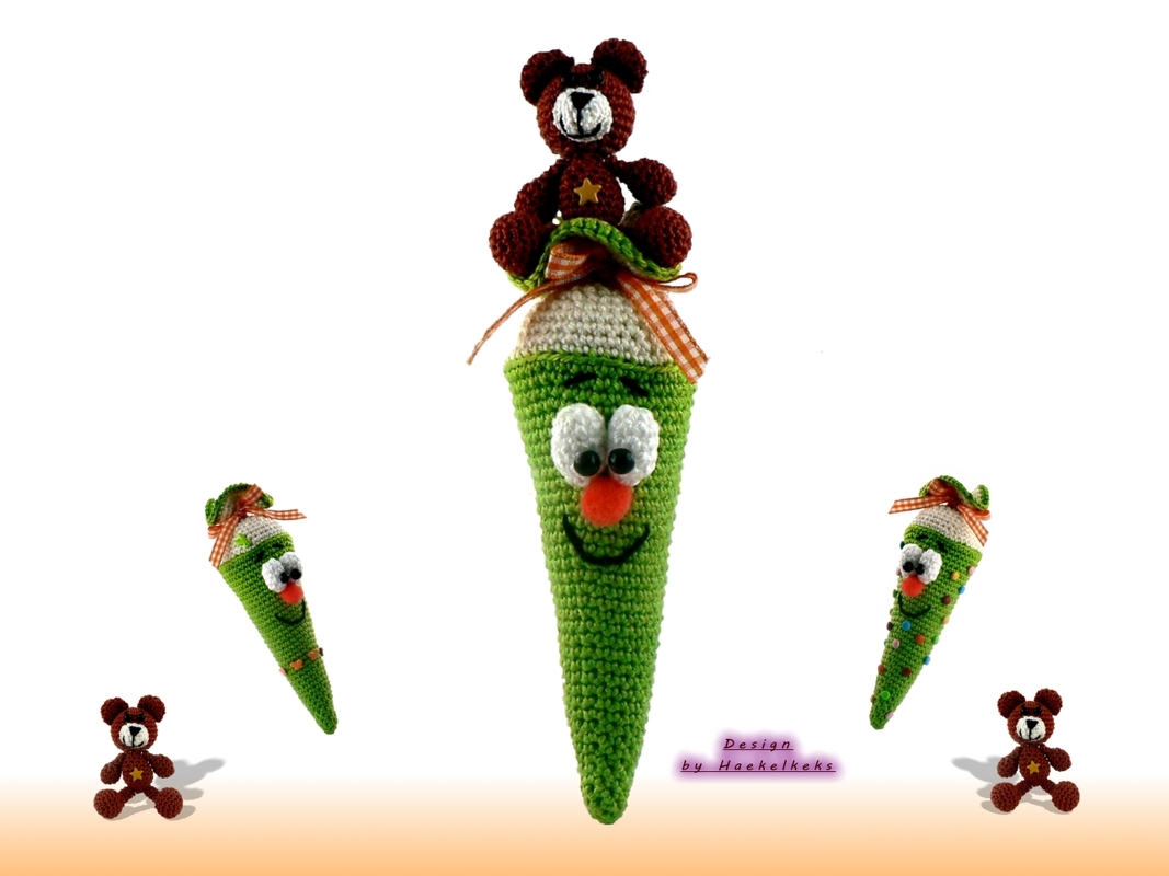 Wir verkaufen hier die passende, leicht verständliche und bebilderte Häkelanleitung zur Zuckertüte mit Teddy.