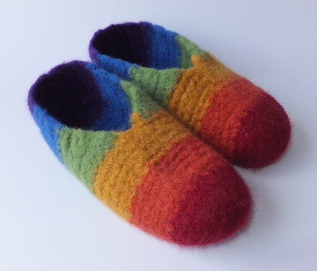 Natürlich können die Filzschuhe auch ohne den Kragen getragen werden (siehe Einzelbilder).