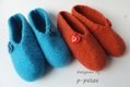 Die Anleitung beinhaltet die Anfertigung der Filzschuhe in Größe 20 - 47 (Tabelle mit einzelnen Daten). Die Filzschuhe sind einfach und schnell von der Spitze zur Ferse in einem Stück gehäkelt. Der Kragen wird nach dem Filzen angehäkelt.