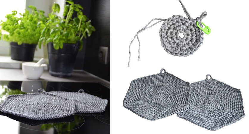 Topflappen sechseckig, Häkelanleitung einfacher Topflappen, Topflappen häkeln, crochet pattern pot holders