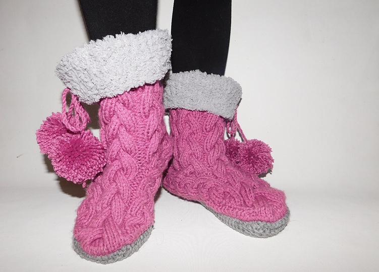 Mit dieser Strickanleitung kannst du diese warmen Hausschuhe stricken.