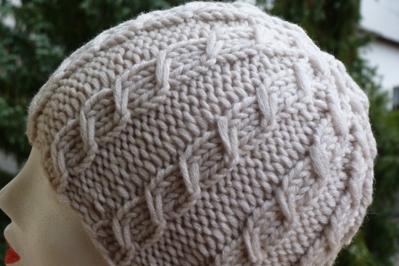 Eine Mütze für Zopfliebhaber, sehr einfach zu stricken, mit Nadeln Nr 7 auch schnell fertig, der Zopf ist nicht ganz