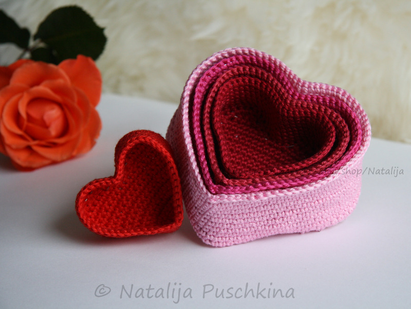 13. Anleitung für 5 gehäkelte Körbchen 'Herz'
